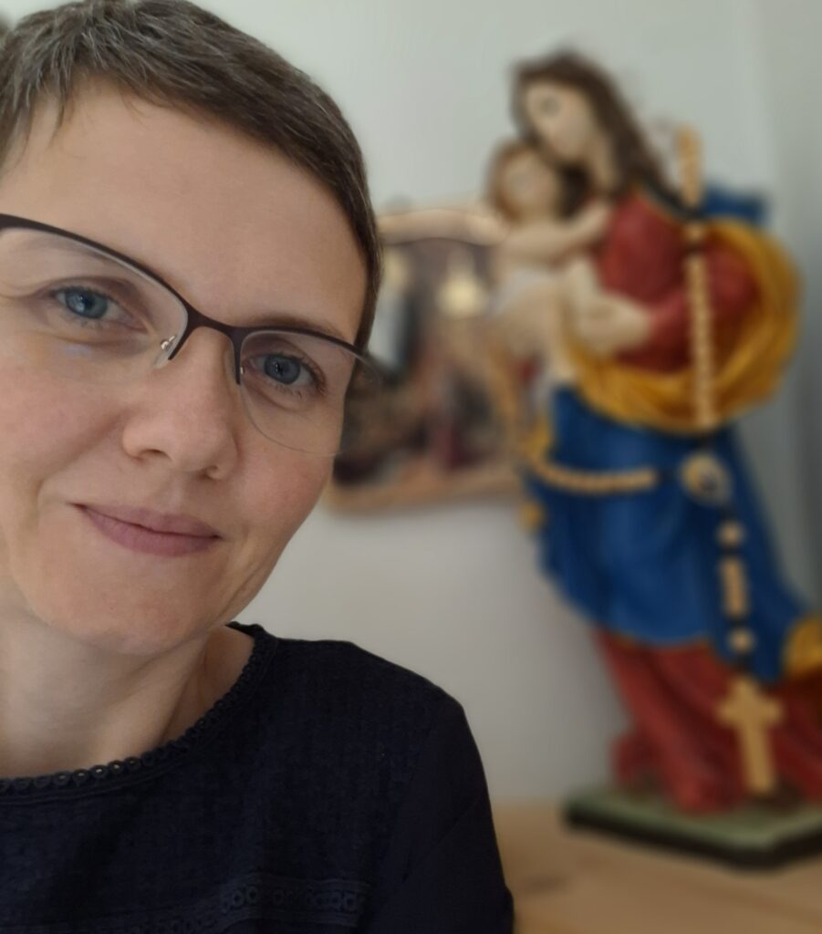 Sem žena in mama, po izobrazbi profesorica razrednega pouka. Na Katehetsko-pastoralni šoli sem zaključila izobraževanje prve stopnje – teološki program. Na svoji poti vere se še vedno učim iskrene ponižnosti in z zaupanjem v Božjo pomoč stopam naprej.